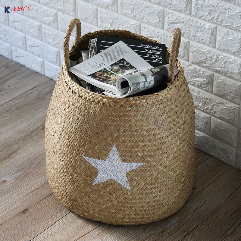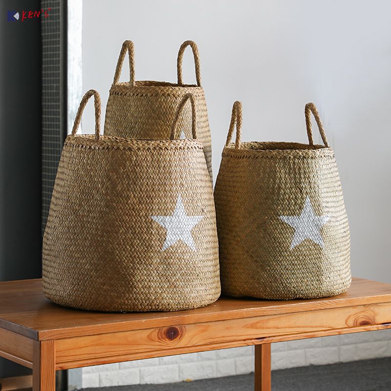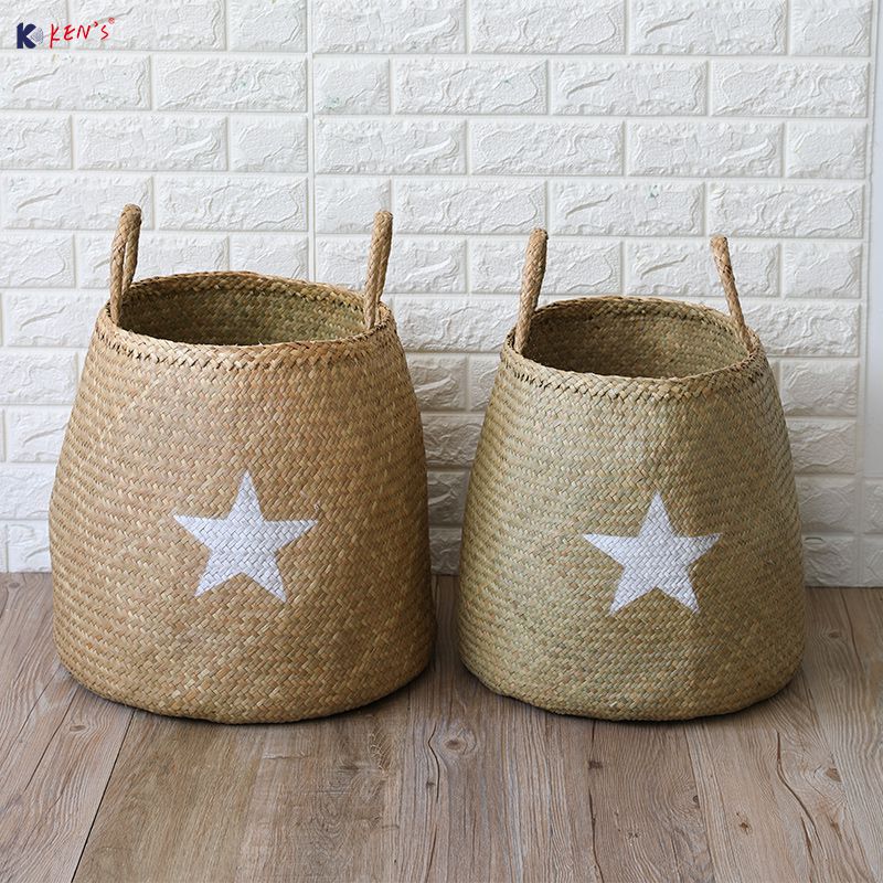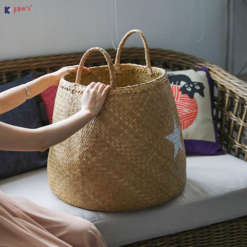 Flat seagrass storage with sisal handle S/2 (888)