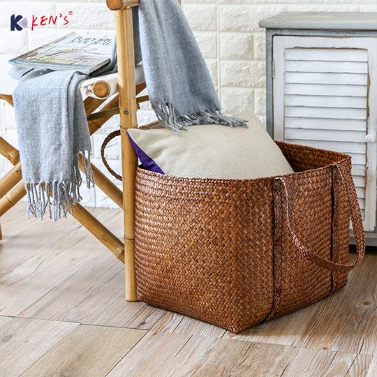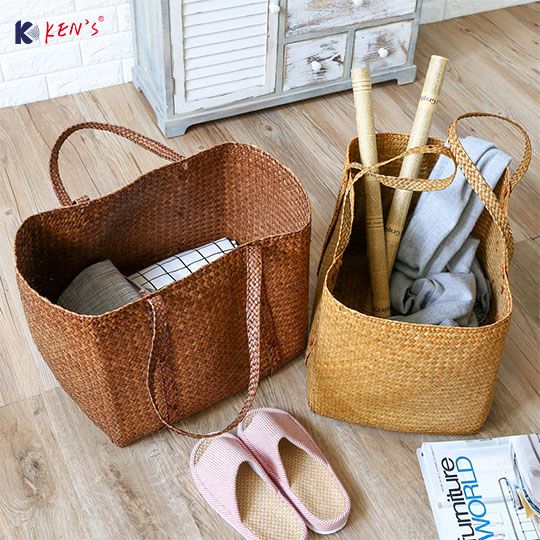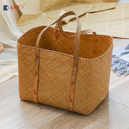 Flat seagrass laundry hand bag
