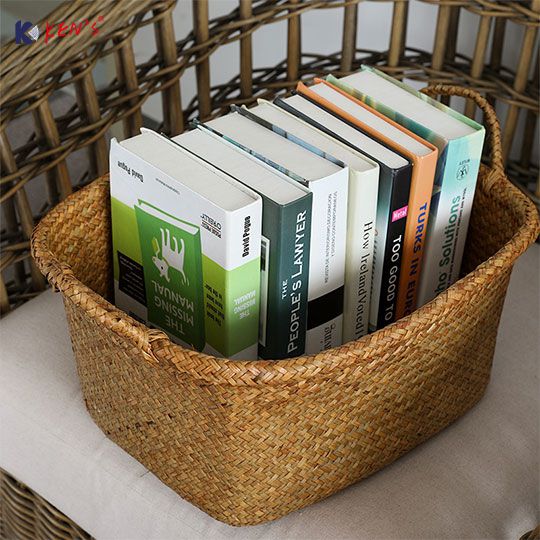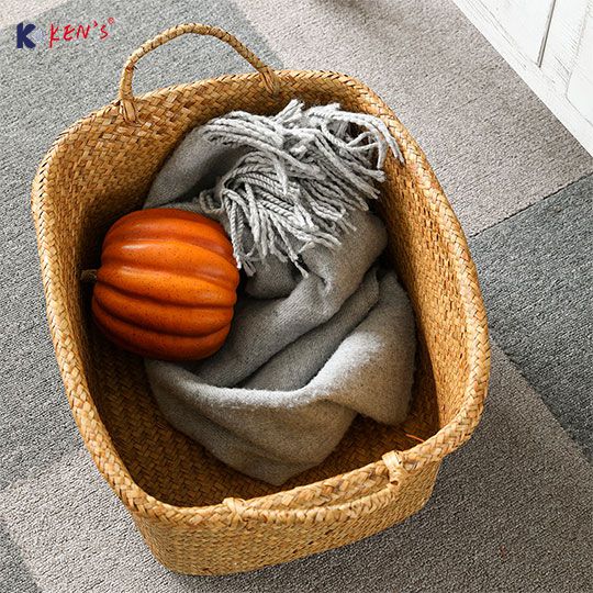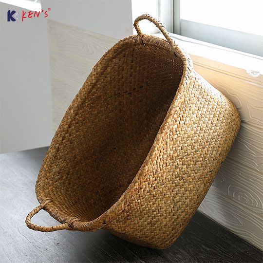 Flat seagrass storage basket with cotton rope (2486)