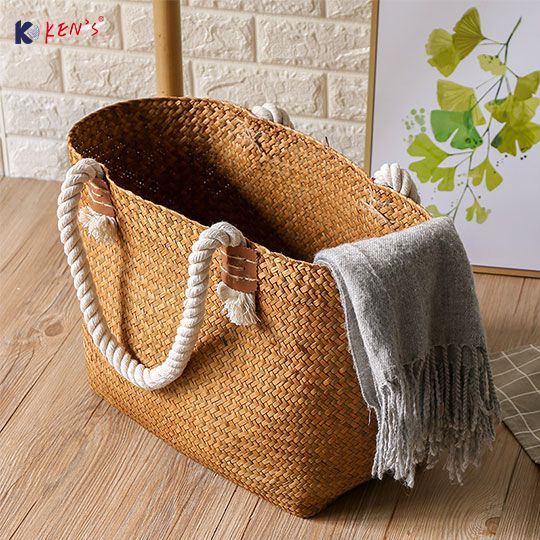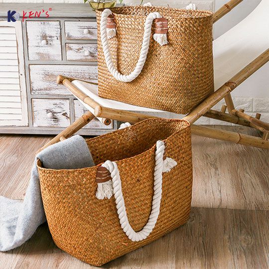 Flat seagrass fashion hand bag with cotton rope (2487)