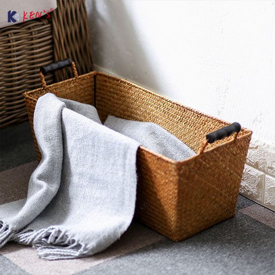 Flat seagrass basket with handle S/3 (2517)