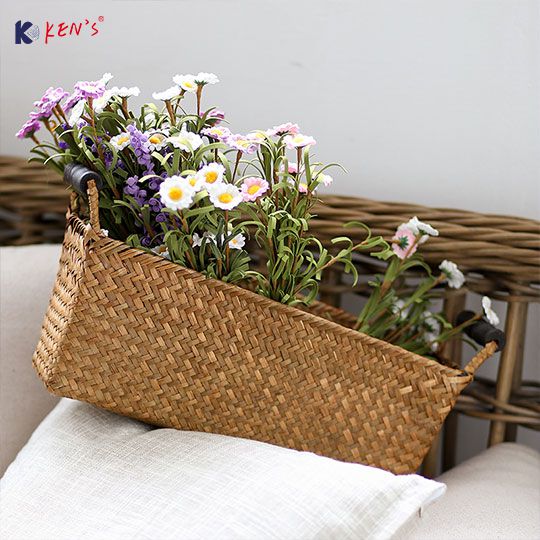 Flat seagrass basket with handle S/3(2482)