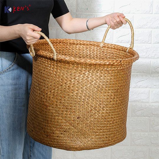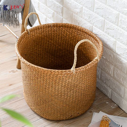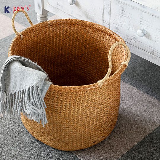 Flat seagrass round storage basket (2503)