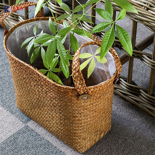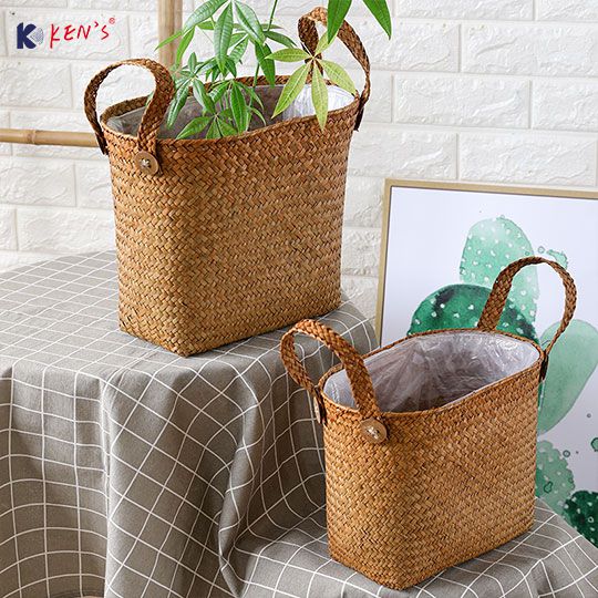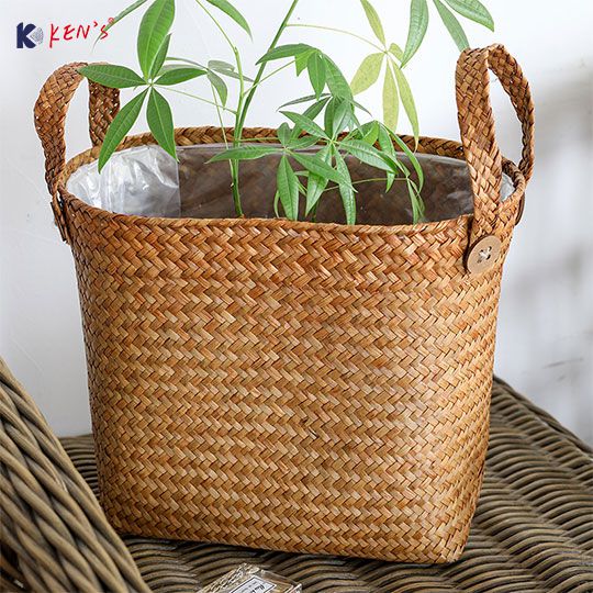 Flat seagrass basket with plastic liner S/2 (2573)