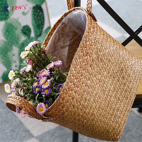 Flat seagrass storage with sisal handle S/2 (888)