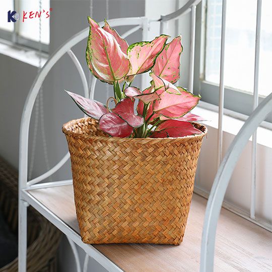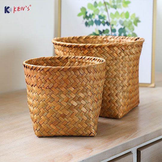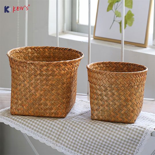 Flat seagrass basket with round top S/2 (2801)