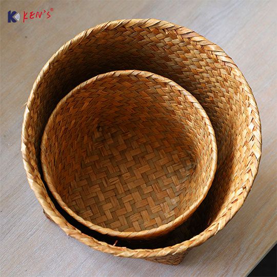 Flat seagrass storage basket with round top S/4 (1593)