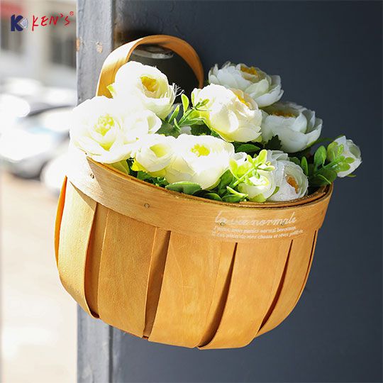 Wooden chips - Wall hanging small storage basket (2771)