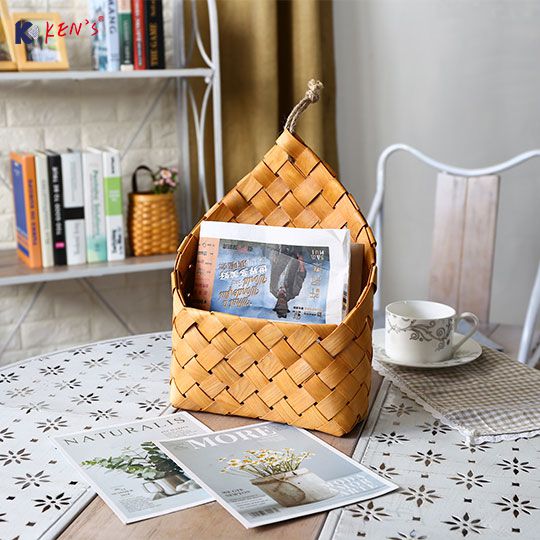 Wooden chips storage basket with foldable handle S/3 (2430)