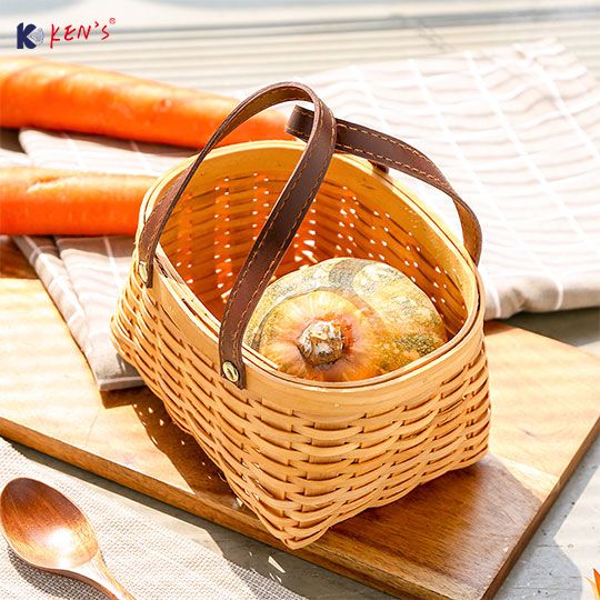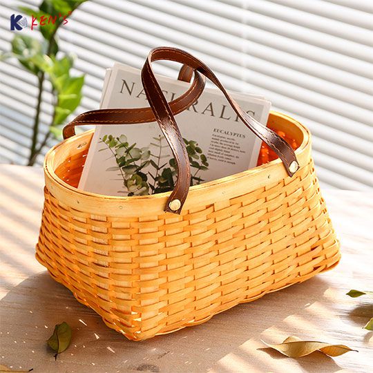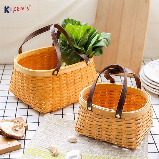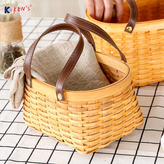 木编皮把手收纳篮