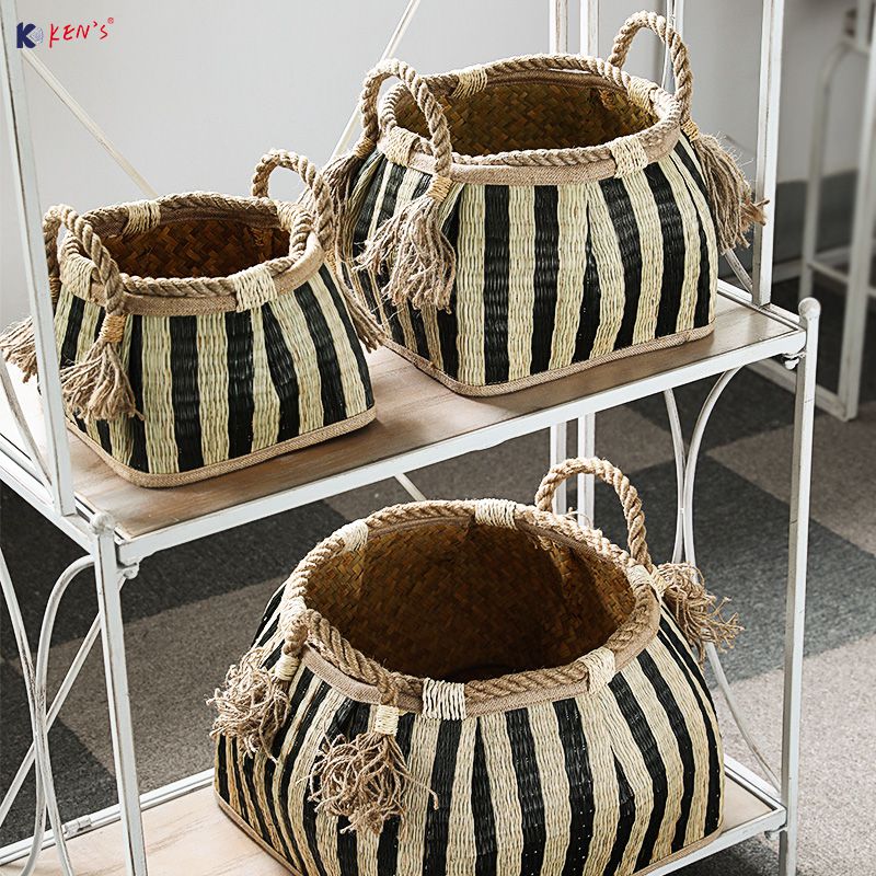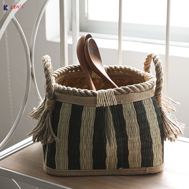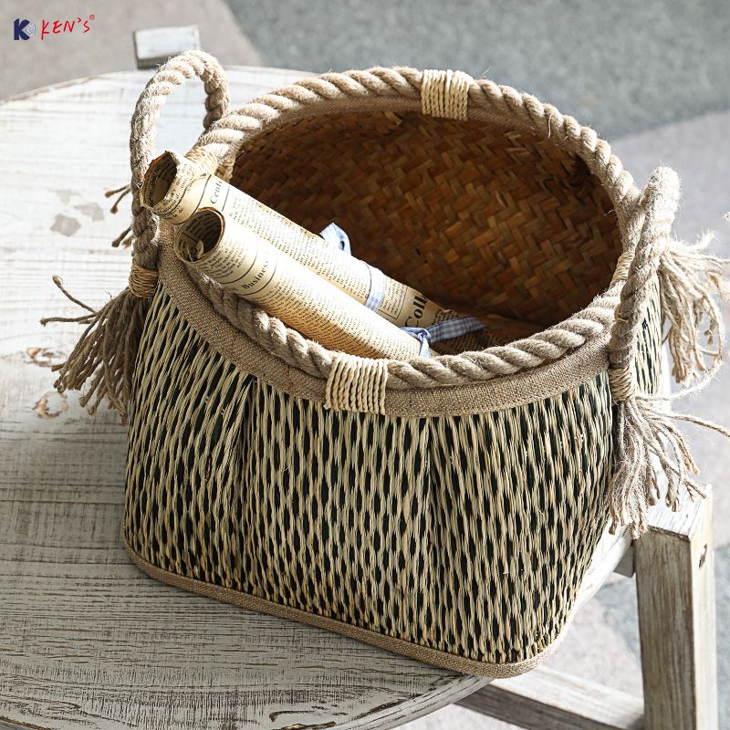 手工草编收纳篮(K001534)