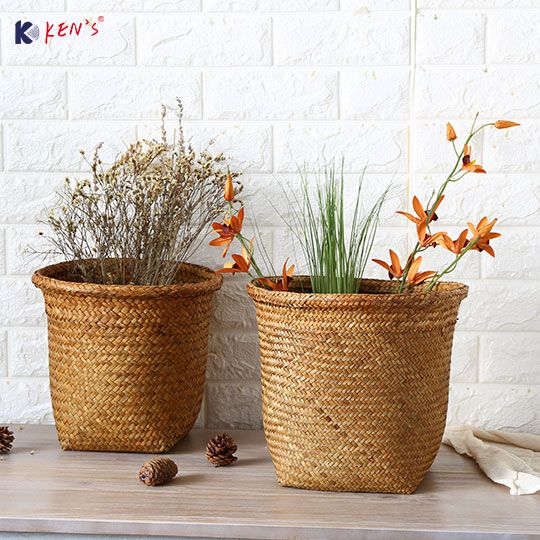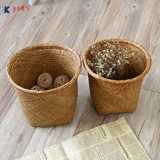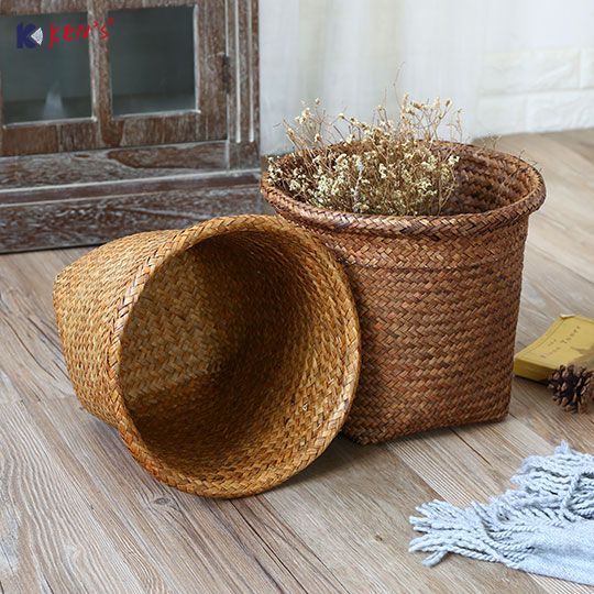 圆形编织花盆套垃圾篓收纳桶收纳筐 (K000637)