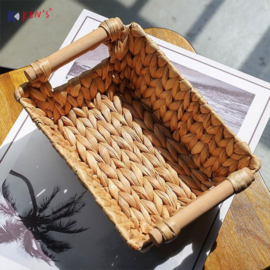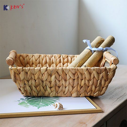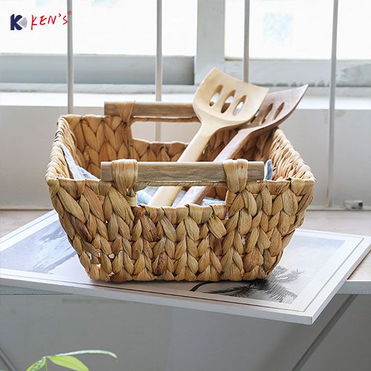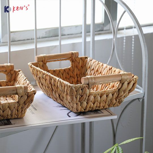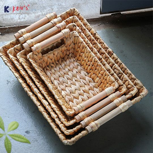 Water hyacinth storage basket with wooden handle S/4 (2658)