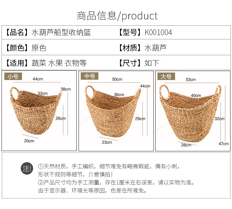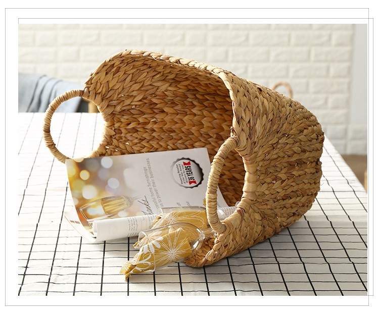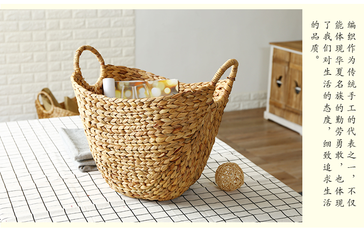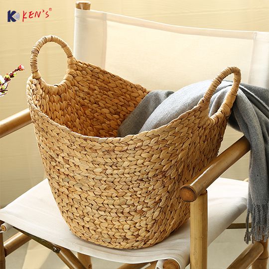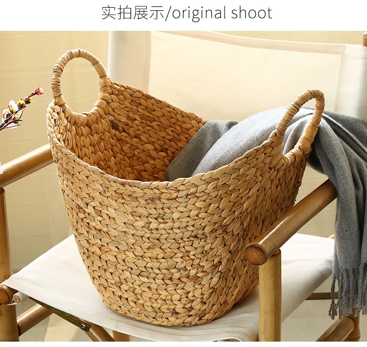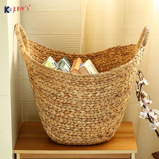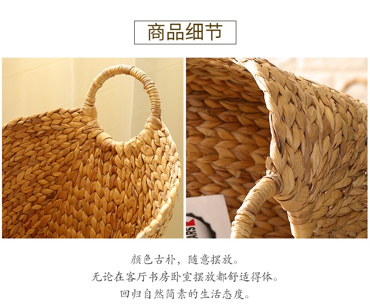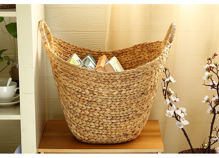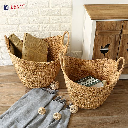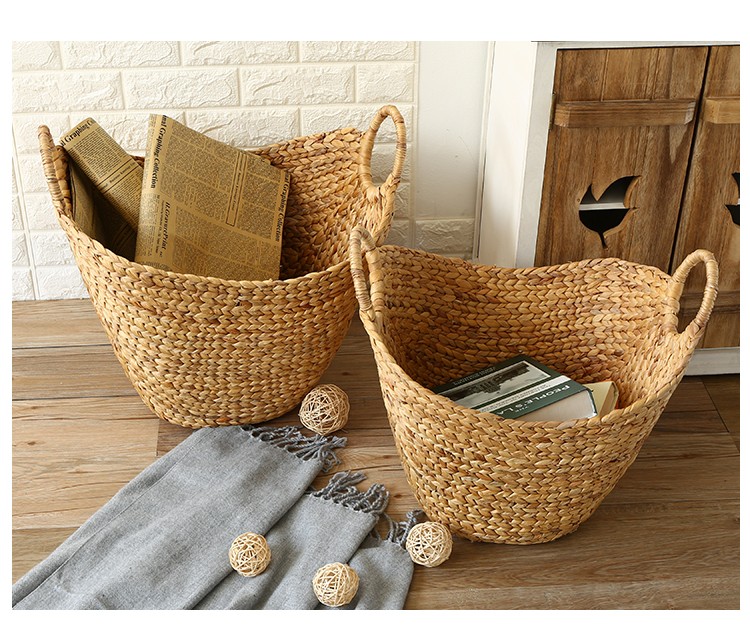 Water hyacinth storage basket with wooden handle S/4 (2658)