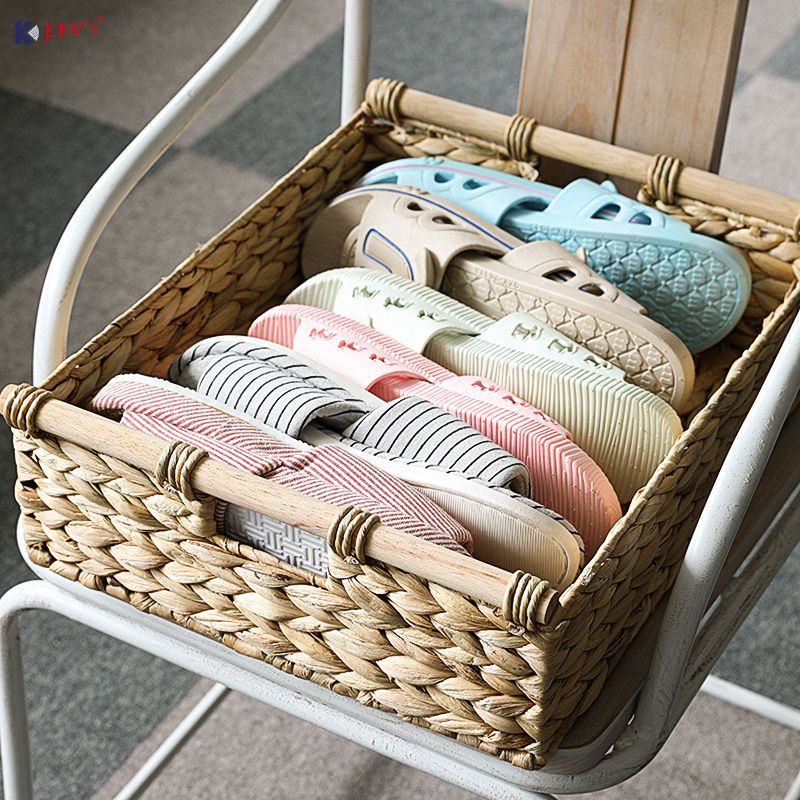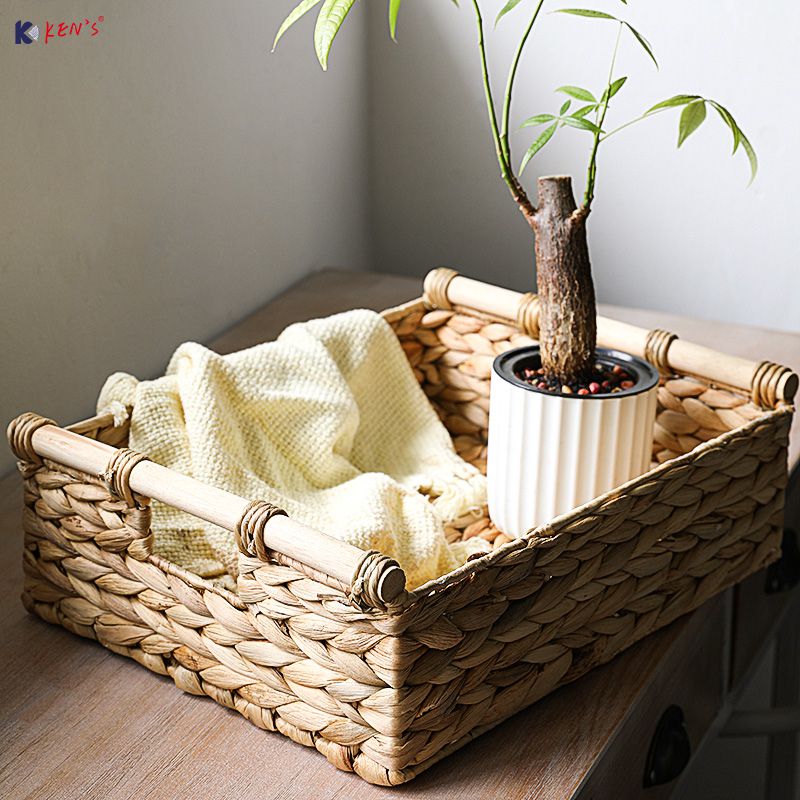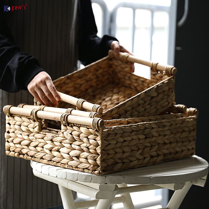 Water hyacinth storage basket with wooden handle S/4 (2658)