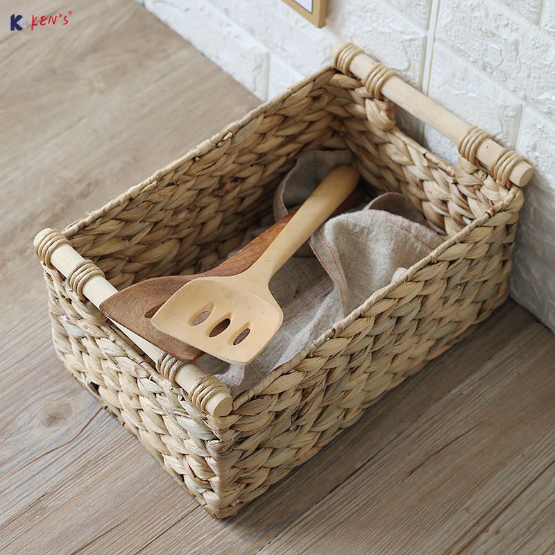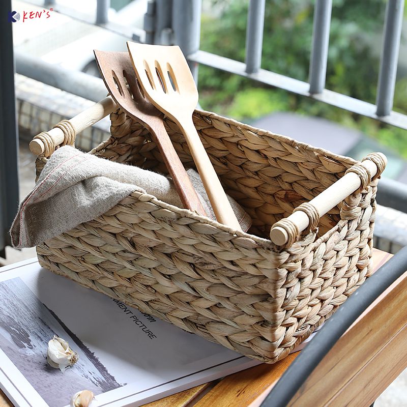 Water hyacinth basket with wooden handle S/2 (2708)