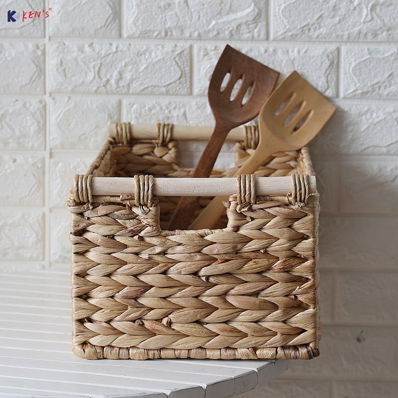 Water hyacinth basket with handle (2548)
