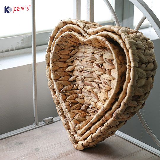 Water hyacinth storage basket with wooden handle S/4 (2658)